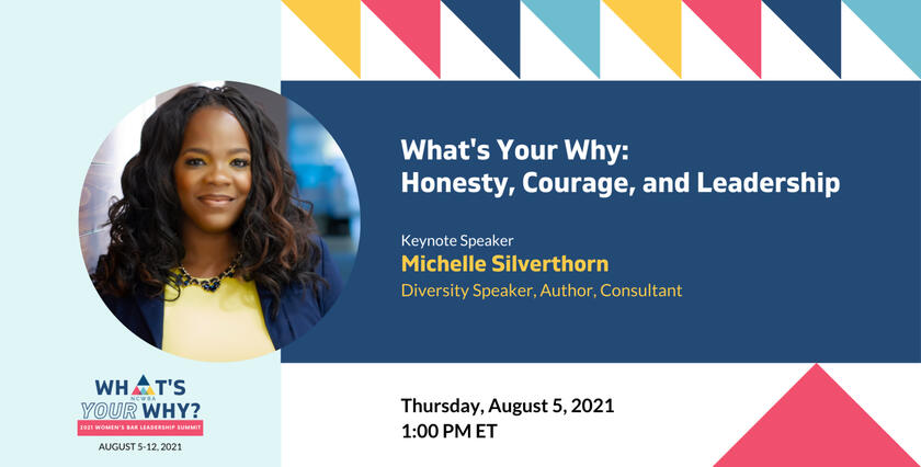 Michelle Silverthorn will kick off the 2021 Women’s Bar Leadership Summit with a powerful keynote speech, exploring the challenges we face in achieving equity and inclusion in the legal profession. Diversity Speaker, Culture Change Expert, Founder of Inclusion Nation, and Author, Ms. Silverthorn “encourage[s] people to live authentically in diverse communities grounded in honesty, courage and leadership.”