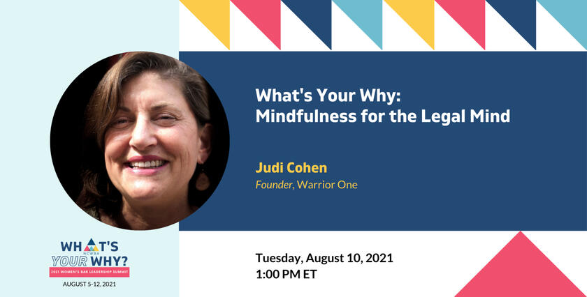 Join us for an interactive workshop on strategies for leveraging mindfulness to help you thrive. Mindfulness for the Legal Mind is a blend of classical mindfulness, contemplative neuroscience, and practical tools designed specifically for legal professionals who want to better understand the (legal) mind and learn ways to cultivate states of mind that support greater effectiveness and wellbeing. In this program, Judi Cohen, Founder of Warrior One and Lecturer at Berkeley Law, will provide an overview of mindfulness, share tips for using mindfulness to reduce stress and improve your overall performance, and lead you through guided mindfulness exercises.